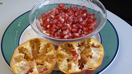 - Entkernte Frucht: Ein Granatapfel enthält rund 600 Kerne.